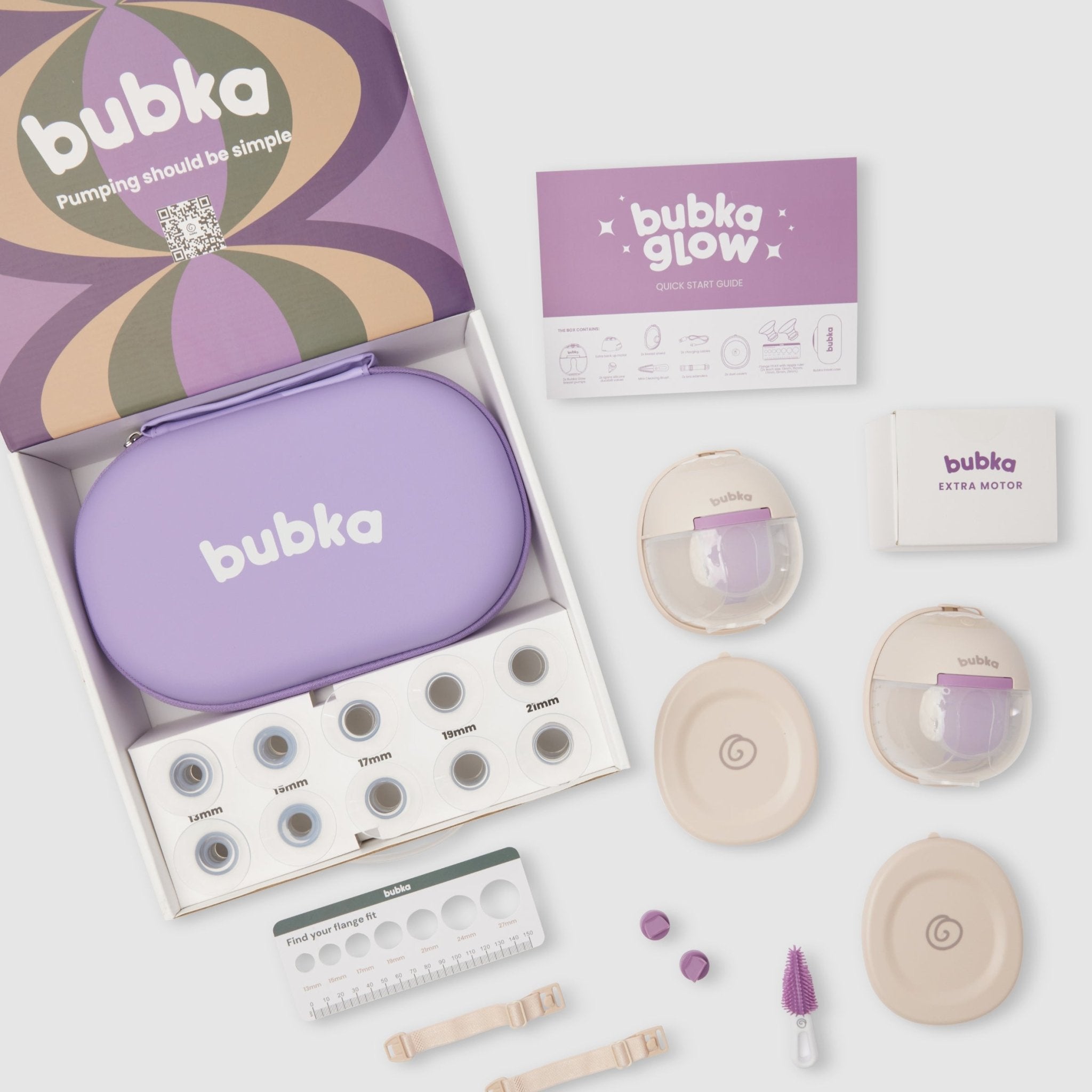 Featuring the Bubka Glow Breast Pump Kit for hands-free, hospital-grade pumping day or night, plus Store & Pour and Store & Snack Milk Bags for flexible milk and food storage as your bub grows. Keeping everything clean is effortless with Jumbo Sterilise Bags for fast at-home steam sterilising and Breast Pump Wipes for quick, mess-free cleans between sessions - even those messy high chairs. Finished with a Carry Case to keep everything organised,